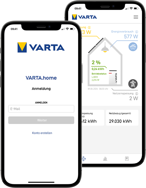 Für einen noch bequemeren Zugriff auf Ihre Energiespeicher-Daten können Sie sich jetzt die App VARTA.home in Ihrem App Store downloaden.